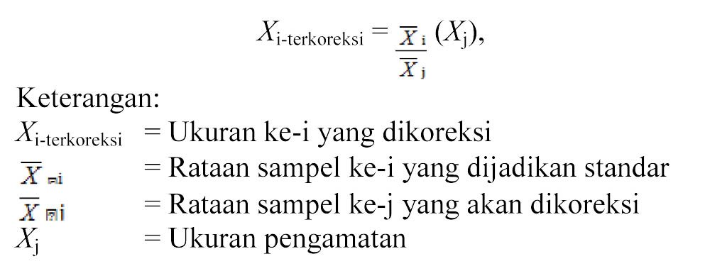 Data ukuran tubuh sapi dapat digunakan untuk menduga jarak genetik menggunakan analisis diskriminan melalui pendekatan jarak Mahalanobis seperti yang dijelaskan dalam Nei (1987). Untuk keperluan penentuan jarak genetik, dilakukan koreksi terhadap kategori umur (24-48 bulan) dan jenis kelamin (jantan) sehingga data yang digunakan untuk analisis diskriminan merupakan data hasil standarisasi menggunakan rumus sebagai berikut: