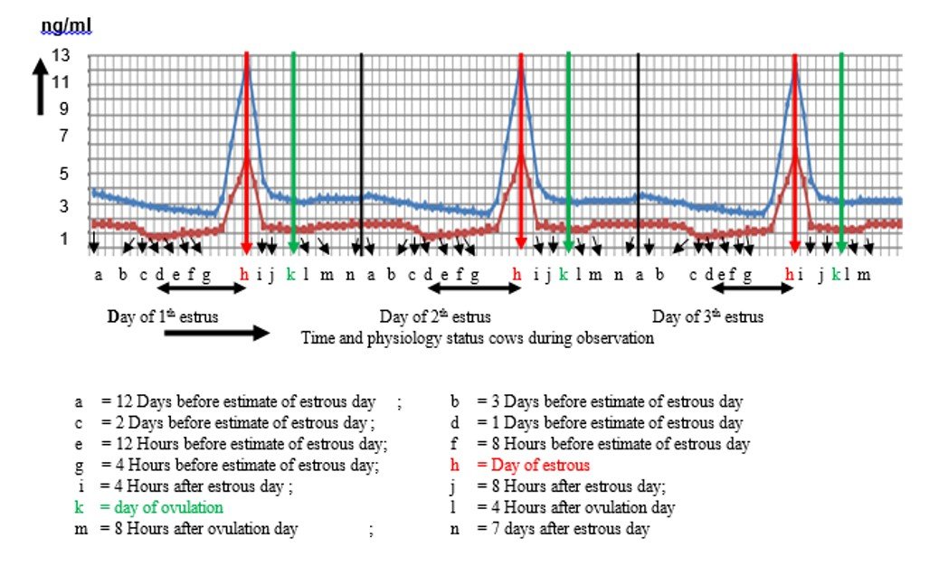 Kojima FN. 2003. The estrous cycle in cattle: Physiology, endocrinology and follicular waves. Prof Anim Sci. 19:83-95.